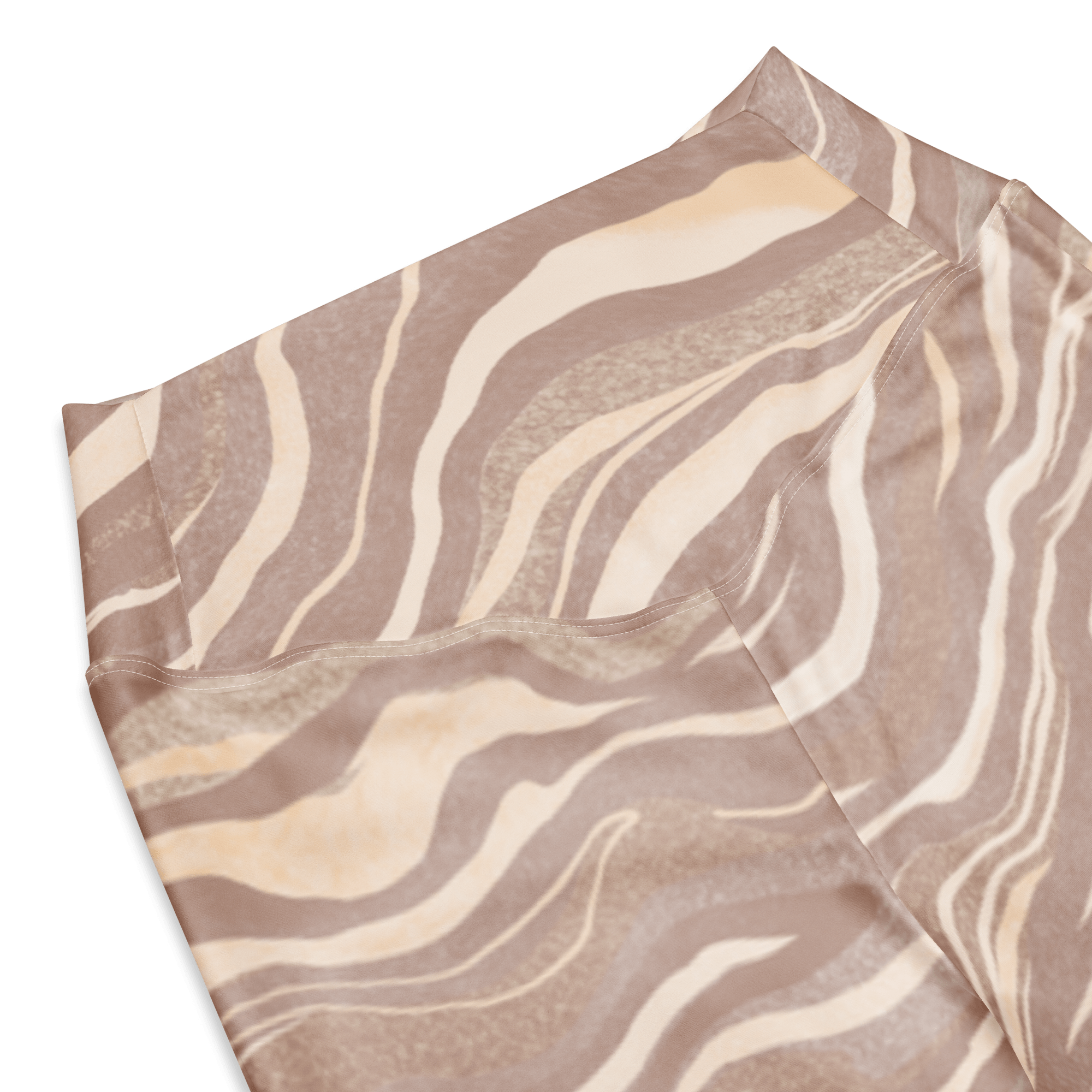 Featuring a high waist and a butt-lifting cut, these leggings are your ultimate confidence booster. 🍑 The playful flair of the flared leg bottoms is reminiscent of the graceful stride of a zebra on the savannah. 🐆 Whether you’re out for a walk, hitting the gym, or styling them up with your favorite bomber jacket or hoodie, these leggings are sure to turn heads. 💃