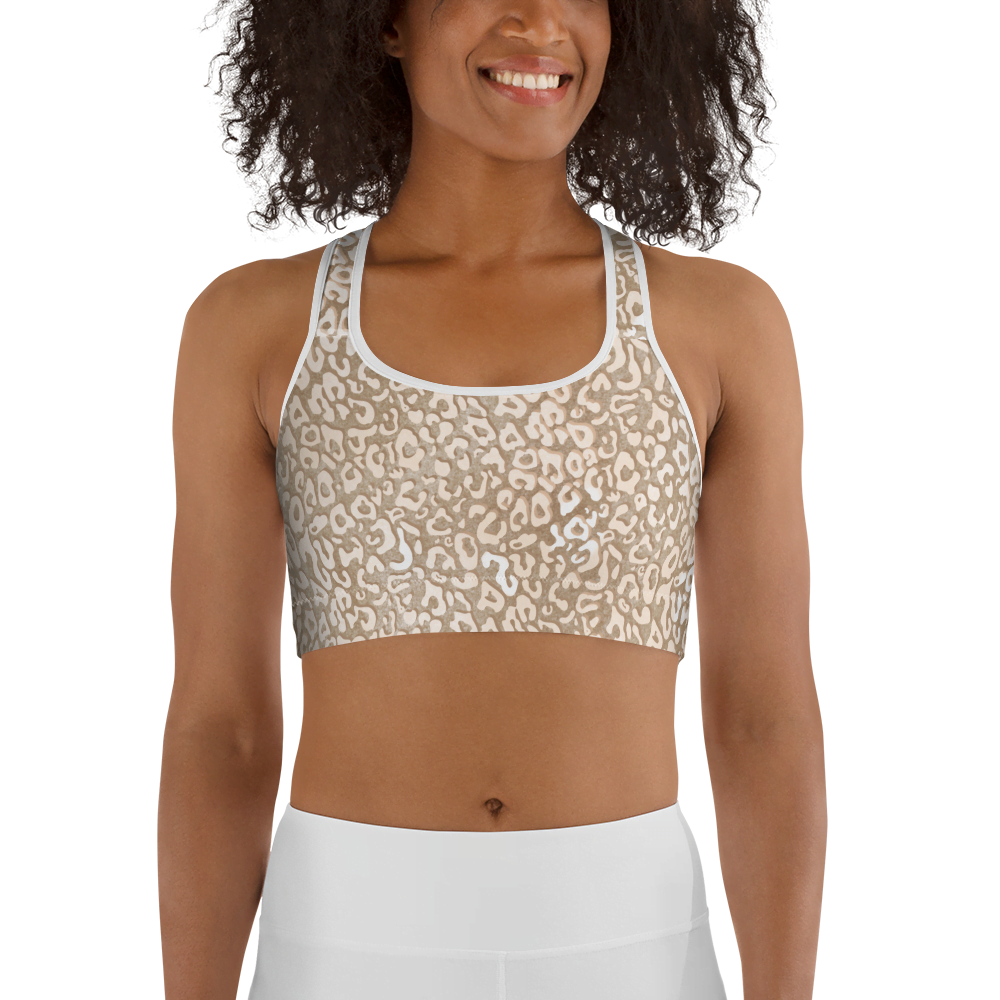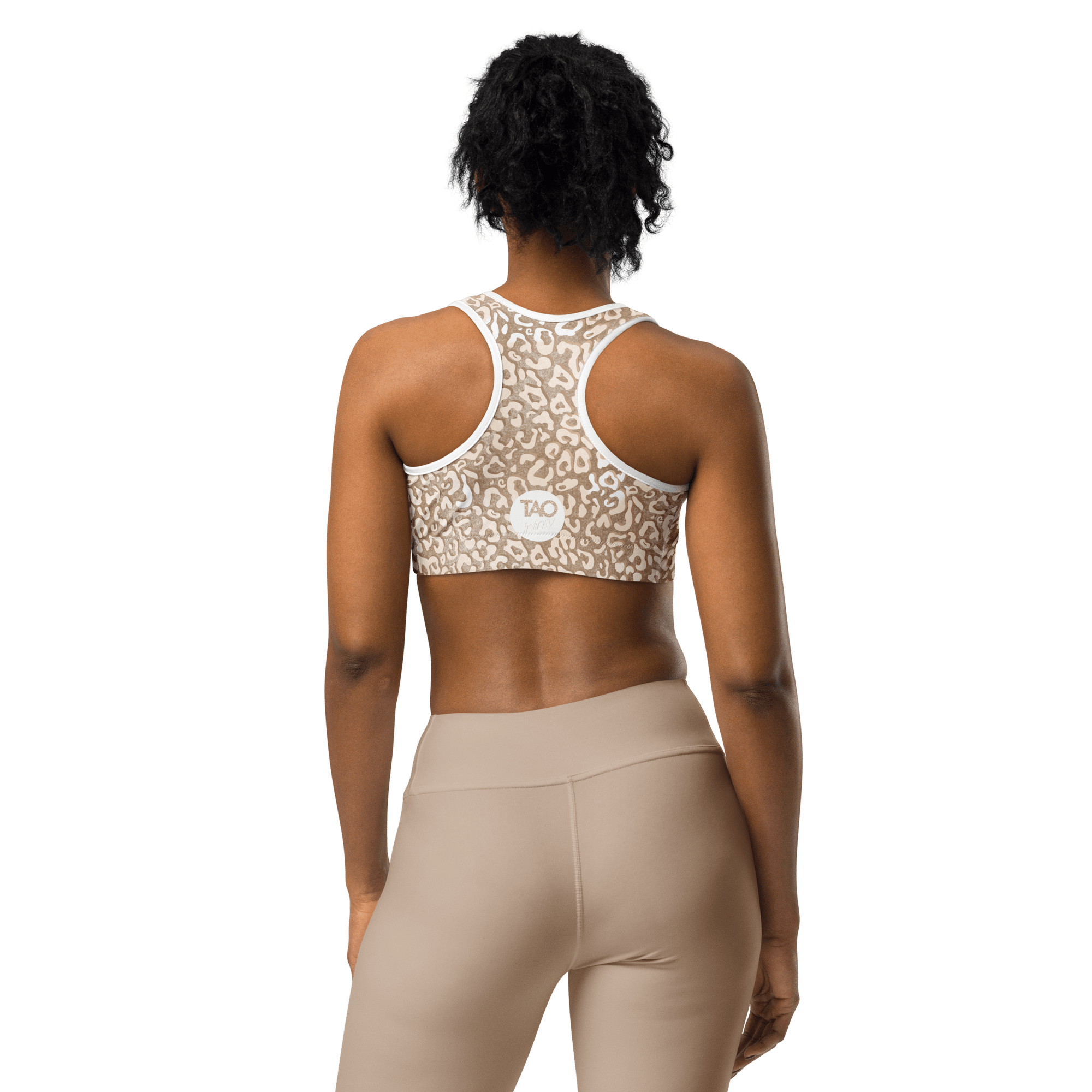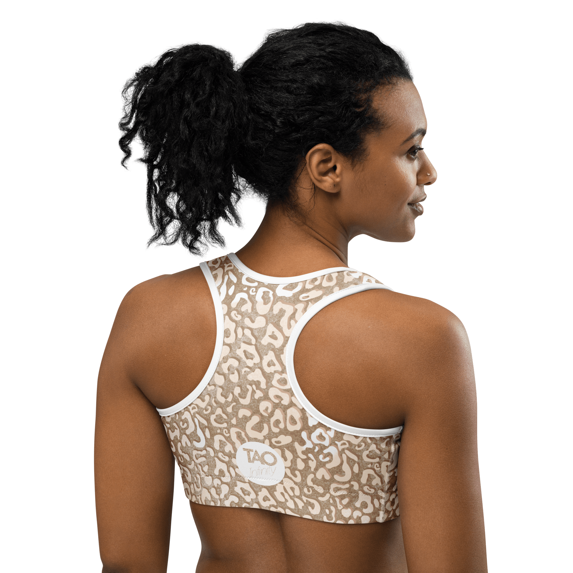 Unleash your wild side with the Leopard Beige Sports Bra! 🐆 Stylish and supportive, this racerback bra with removable padding is perfect for workouts and athleisure looks. 💪✨